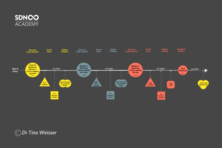 You will also be able to connect to like-minded people in a safe space and learn from the experiences of others. Every participant will be matched to another participant, his, or her "Buddy". The theoretical impulses will encourage you to rethink or develop your own leadership attitude.